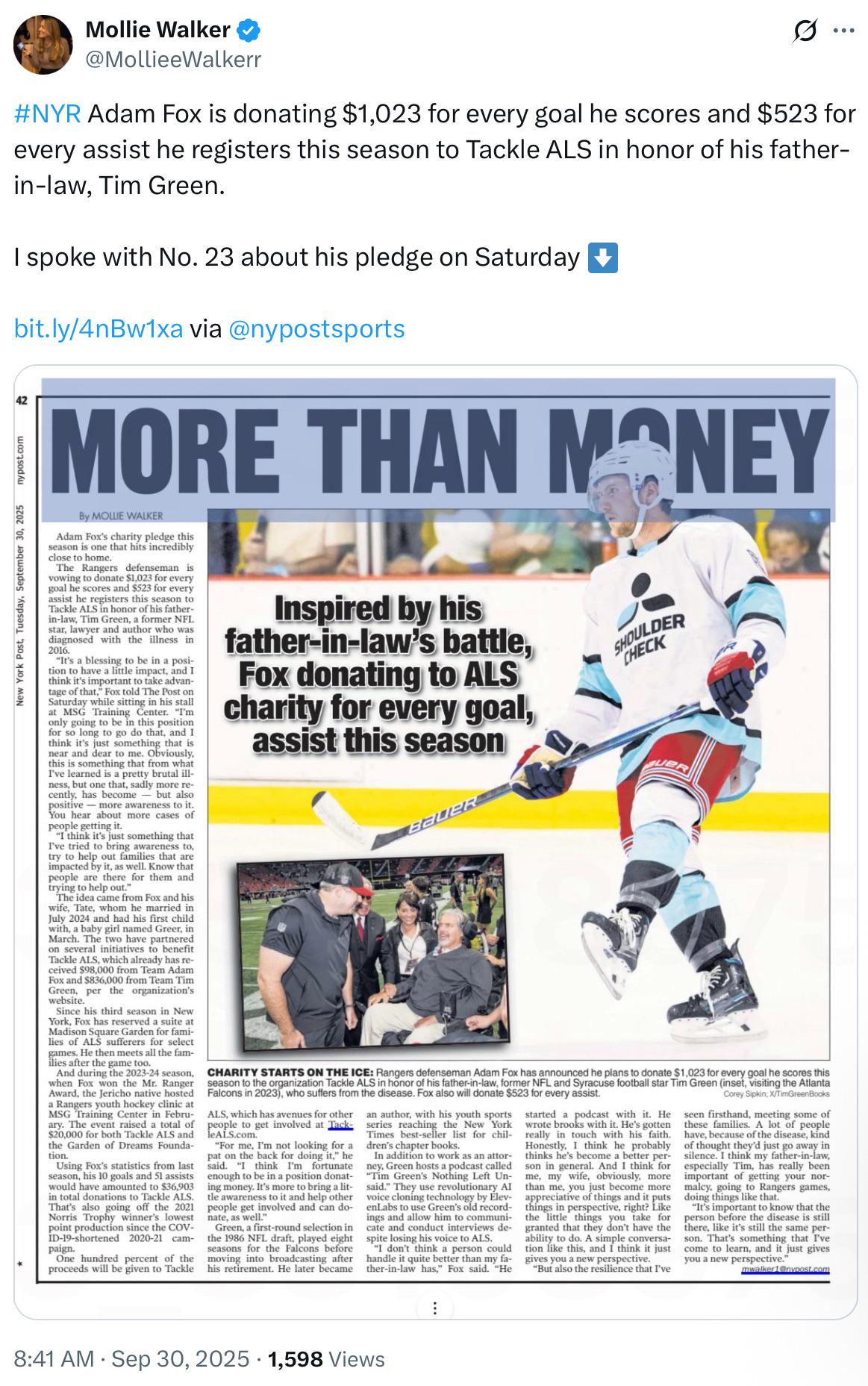 arrow-up11arrow-down1image(Semi OT) NY Rangers Defenseman Adam Fox is donating $1,023 for every goal he scores and $523 for every assist he registers this season to Tackle ALS in honor of his father-in-law, and former Batt...plus-squarei.redd.itLemmit.Online botMABEnglish · 2 days agomessage-square0linkfedilink