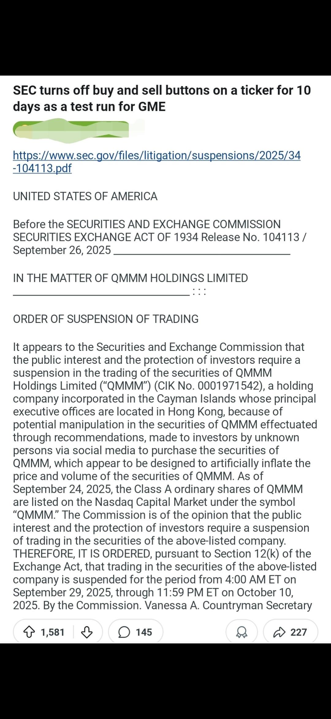arrow-up11arrow-down1imageSEC beta-tests the ‘turn off buy & sell’ button. Coming soon to a meme stock near you🎮 🍿!plus-squarei.redd.itLemmit.Online botMABEnglish · 22 hours agomessage-square0linkfedilink