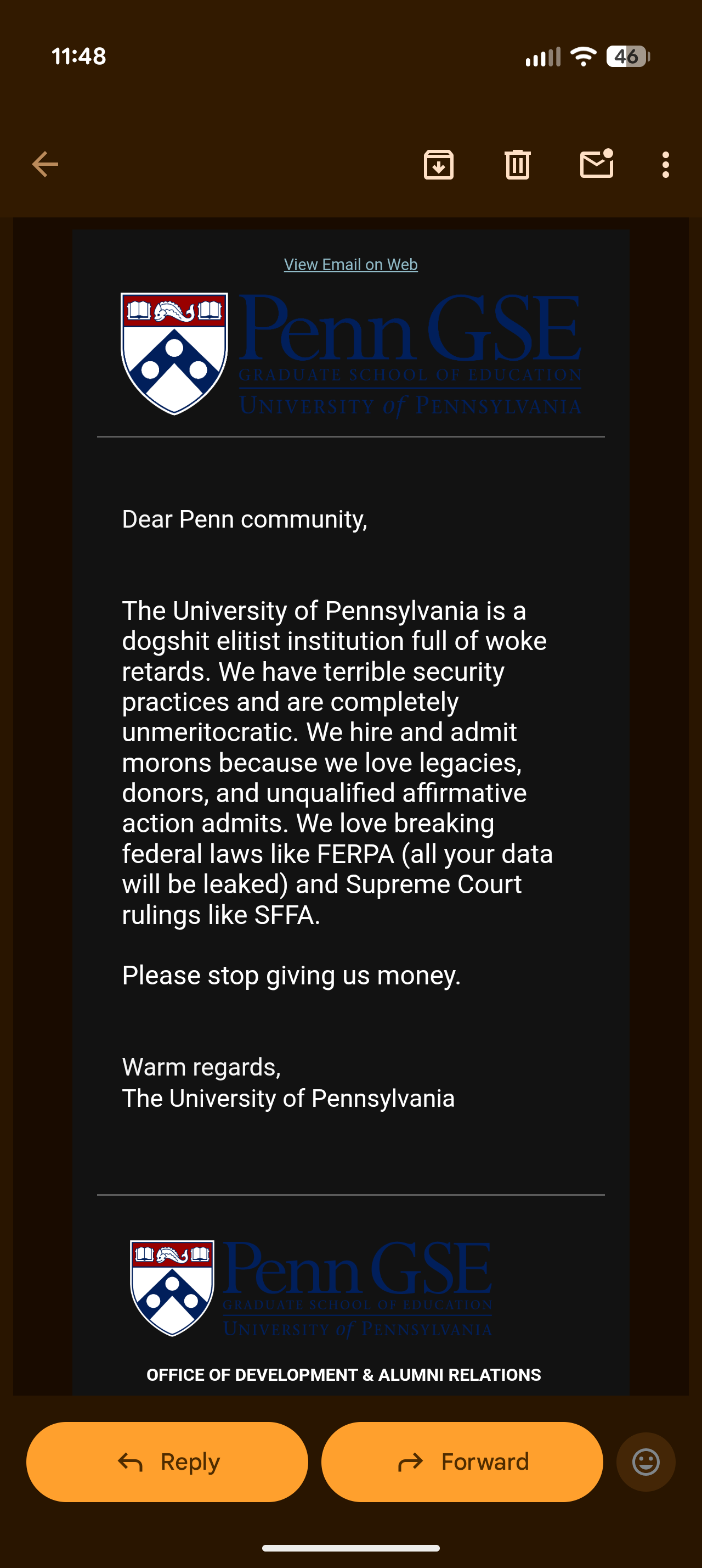 arrow-up11arrow-down1imageAnyone else get this email from UPenn?plus-squarei.redd.itLemmit.Online botMABEnglish · 8 hours agomessage-square0linkfedilink