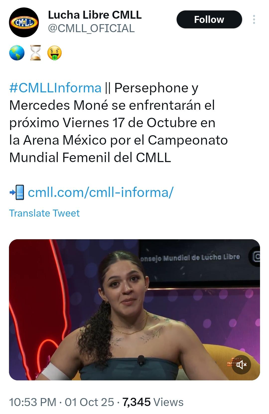 arrow-up11arrow-down1imageMercedes Mone will defend her CMLL Women's World Championship against Persephone on October 17plus-squarei.redd.itLemmit.Online botMABEnglish · 11 hours agomessage-square0linkfedilink