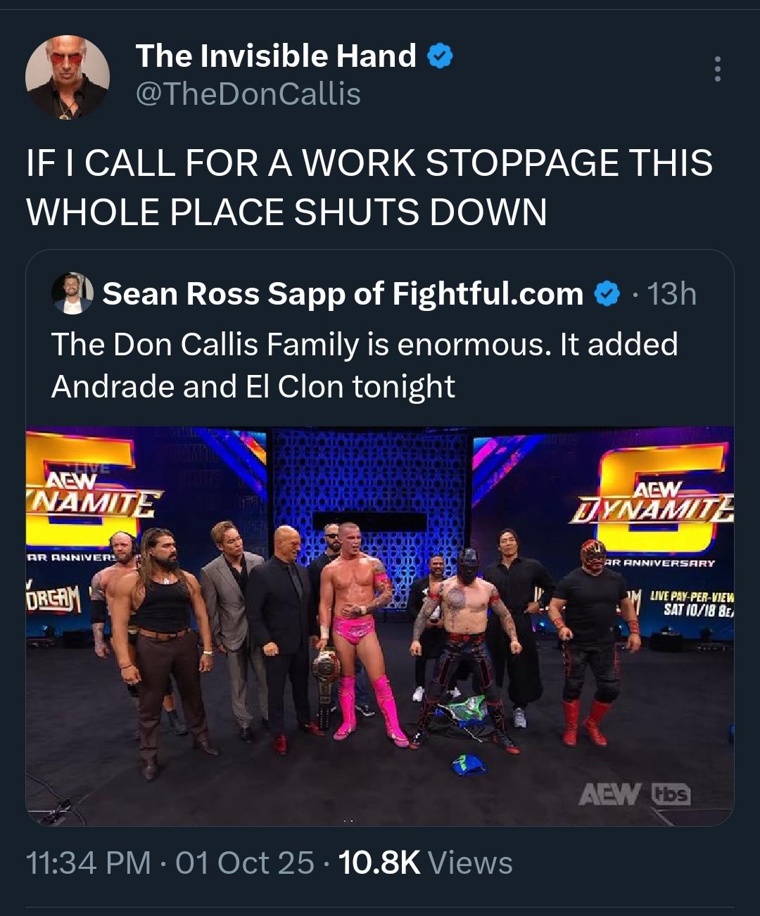 arrow-up12arrow-down1image[AEW Dynamite] Don Callis on X: IF I CALL FOR A WORK STOPPAGE THIS WHOLE PLACE SHUTS DOWNplus-squarei.redd.itLemmit.Online botMABEnglish · 3 hours agomessage-square0linkfedilink
