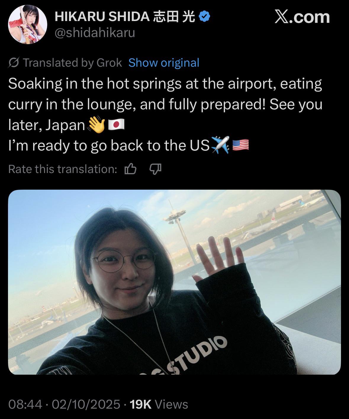 arrow-up11arrow-down1imageHikaru Shida on her way back to the USplus-squarei.redd.itLemmit.Online botMABEnglish · 7 hours agomessage-square0linkfedilink